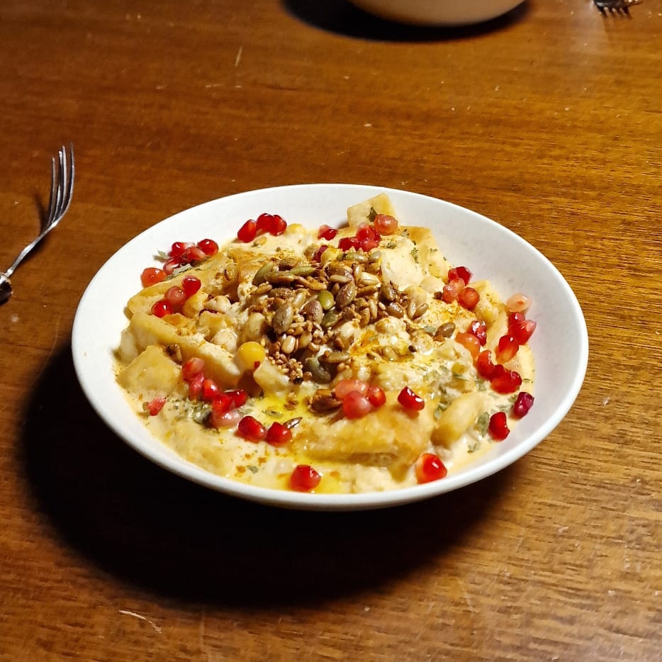 28. Garnish with chopped mint and pomegranate seeds (optional)